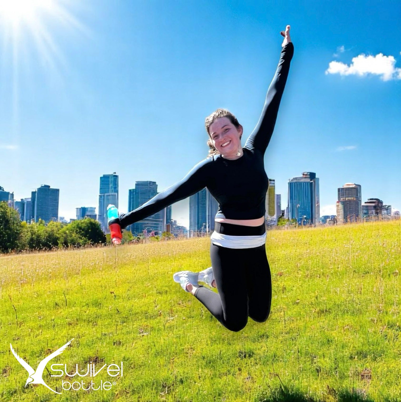 Swivel Bottle brings confidence to your runs. Two drinks. One hand. Feel the swivel. Conquer the mile.